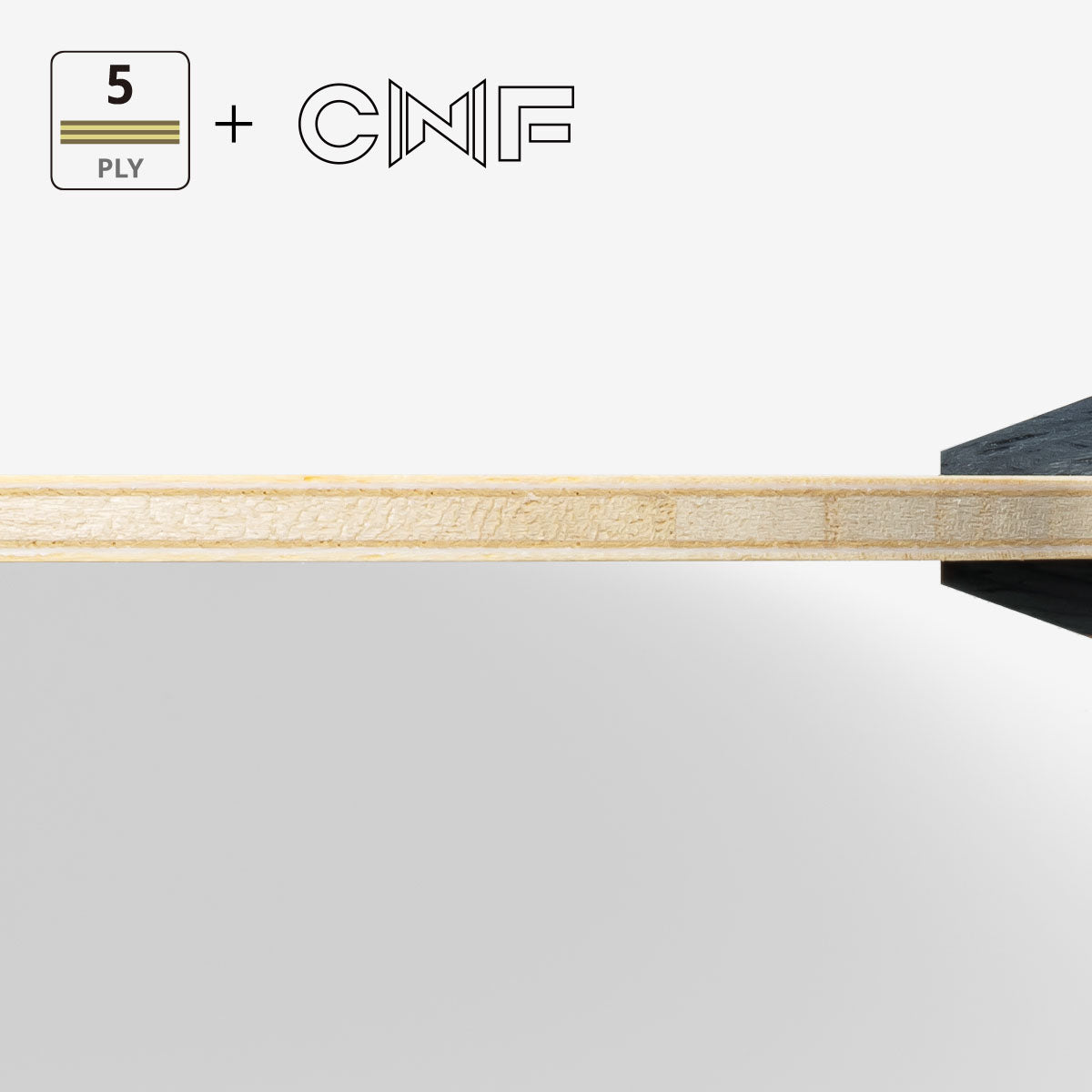 Cellulose nanofiber; a nano-technology artificial fiber provides this blade with high speed and a lower vibration property. While enabling powerful shots, the blade also offers the feeling of long dwell time thanks to its low vibration property.