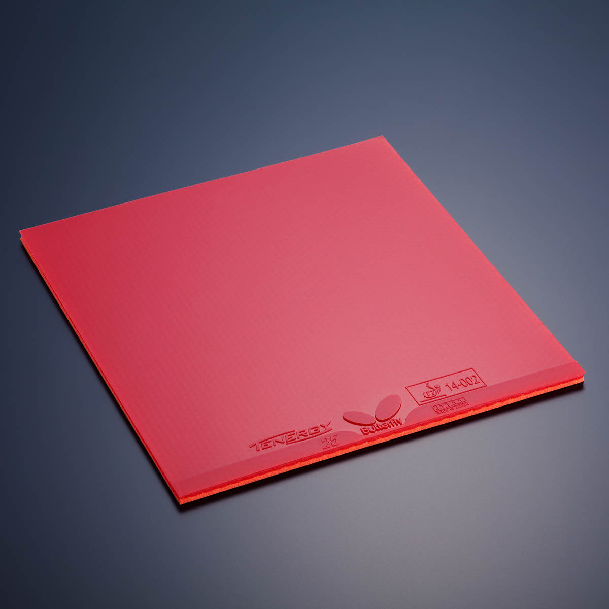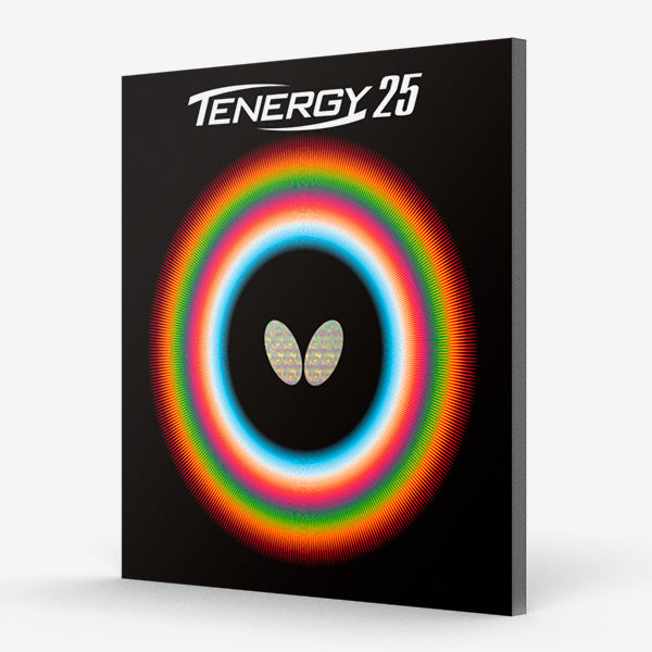Tenergy combines the innovative Spring Sponge with High Tension technology to create a truly devastating weapon at the table. Butterfly Tenergy 25 , in various tests with Butterfly-sponsored world class players, proved to be the most suitable for playing close to the table. Tenergy 25 has pimples of a larger diameter than most other rubbers; this creates dynamic attacking play, enabling heavy rotation to be imparted on the ball; it is the perfect solution for players with strong and accurate attacking strokes. It also keeps its explosive power throughout the life of the rubber without the use of speed glue or boosting.